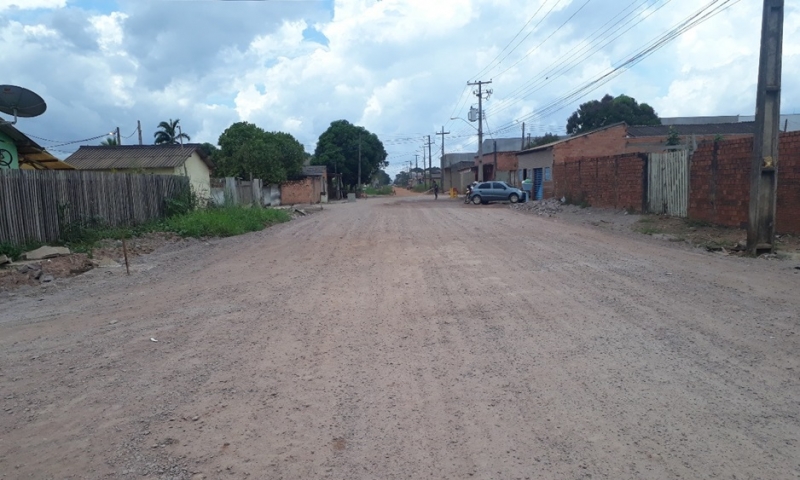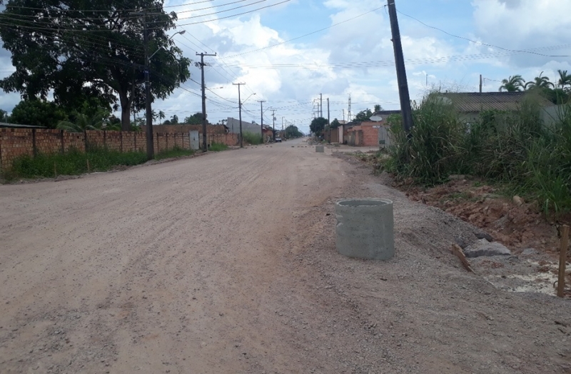 Nas proximidades da Rua Mané Garrincha, o piso está pronto para receber o asfalto ...