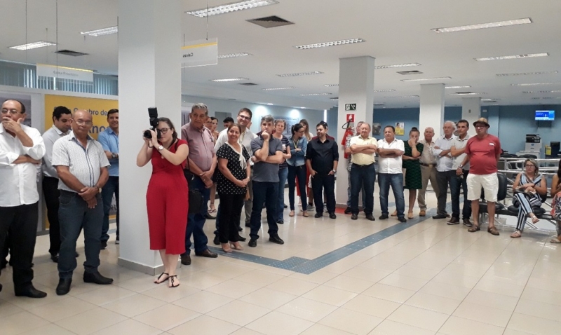 Os empresários pioneiros Gilberto Miranda, Fracisco Hildalgo Farina, o ‘Paco’ e o ex-prefeito Sales, relembraram, em suas falas, a história do banco e sua importância para o desenvolvimento regional. Presentes também o ex-superintendente Cezar Marini e o ex-gerente da agência, Edvaldo.