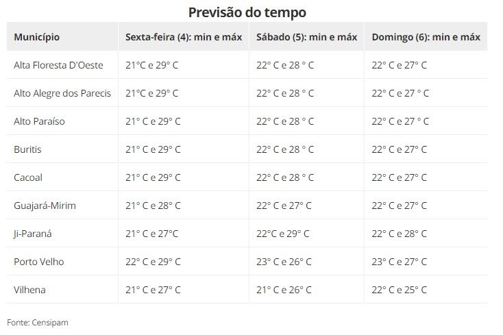 Confira as temperaturas dos próximos três dias nas cidades de RO: