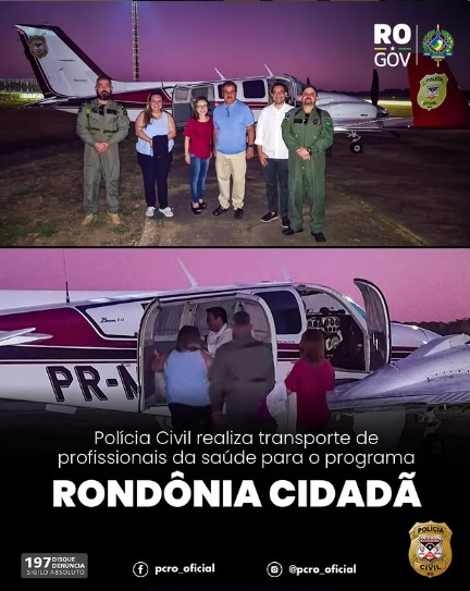 Redação, Santana do Guaporé (RO),19 de julho de 2025 – A Polícia Civil do Estado de Rondônia, por meio do Serviço Aeropolicial (Saer), prestou apoio logístico fundamental neste sábado (19) ao transportar profissionais da saúde até o distrito de Santana do Guaporé, no município de São Miguel do Guaporé, para participarem de mais uma edição do Programa Rondônia Cidadã.