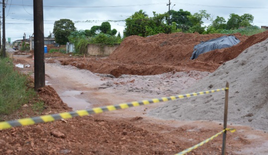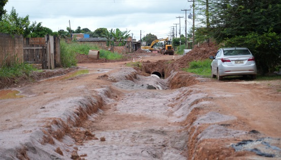Até o momento, os serviços estavam paralisados na fase de execução da rede de drenagem, etapa essencial que antecede a pavimentação e demais melhorias urbanísticas.