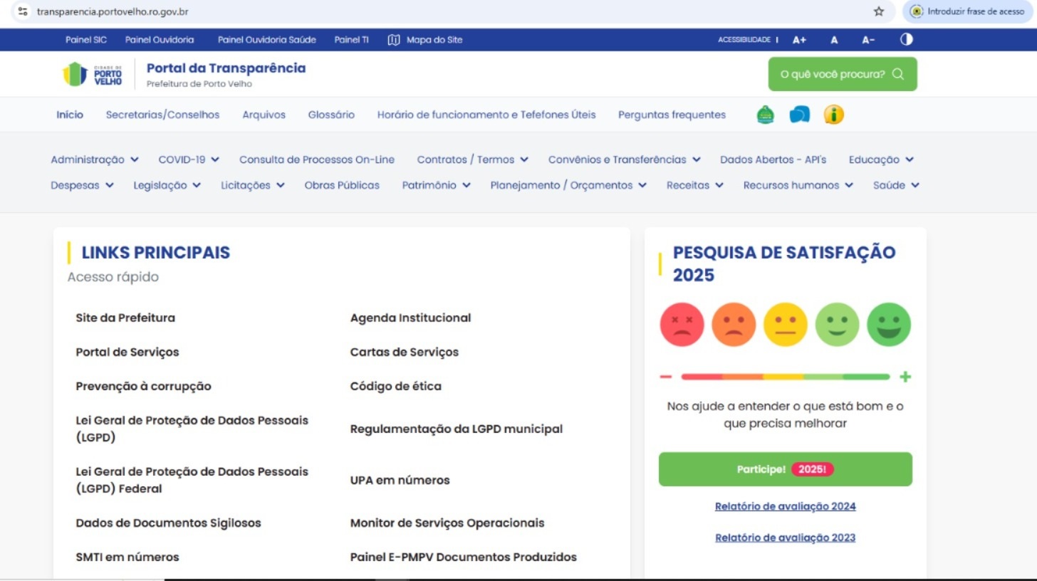 A conquista da nota 95,91 no Portal da Transparência referente ao ano de 2025 é um importante marco que está sendo celebrado pela Prefeitura de Porto Velho. A avaliação do Tribunal de Contas de Rondônia (TCE-RO) é ainda mais significativa pelo fato da nota ser superior a de 2024. O índice destaca o avanço da capital no cumprimento das normas de acesso à informação e reforça o compromisso do prefeito Léo Moraes com a transparência e a responsabilidade na gestão pública.