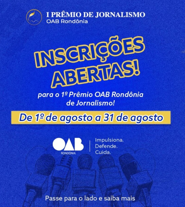 O prazo de inscrições para o 1º Prêmio OAB Rondônia de Jornalismo está chegando ao fim. Jornalistas profissionais e estudantes de Jornalismo têm até o dia 31 de agosto para garantir participação na premiação que valoriza conteúdos sobre o papel institucional da Ordem dos Advogados do Brasil - Seccional Rondônia (OAB RO).