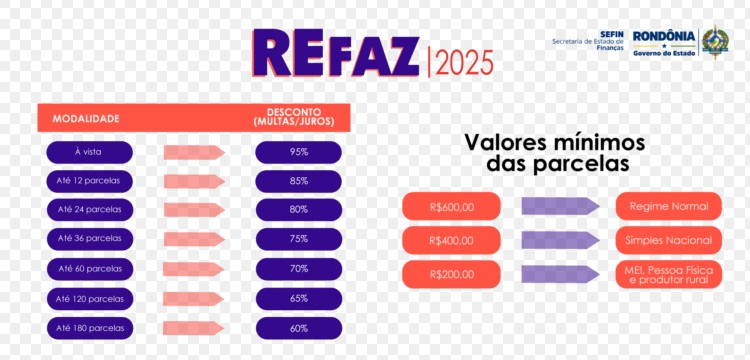Redação, Porto Velho RO, 20 de setembro de 2025 - O governo de Rondônia, por meio da Secretaria de Estado de Finanças (Sefin), lançou nesta sexta-feira, 19 de setembro de 2025, o Refaz ICMS 2025, um novo programa destinado a regularizar débitos fiscais junto ao ICMS com condições mais acessíveis aos contribuintes.