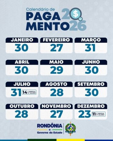 O governo do estado de Rondônia publicou no Diário Oficial do Estado (Diof) o calendário anual de pagamento de 2026, apresentando as datas para os servidores ativos, aposentados e pensionistas. O calendário inclui as duas datas de pagamento do 13.º salário. A administração pública, mais uma vez, garante a valorização e planejamento para este ano.