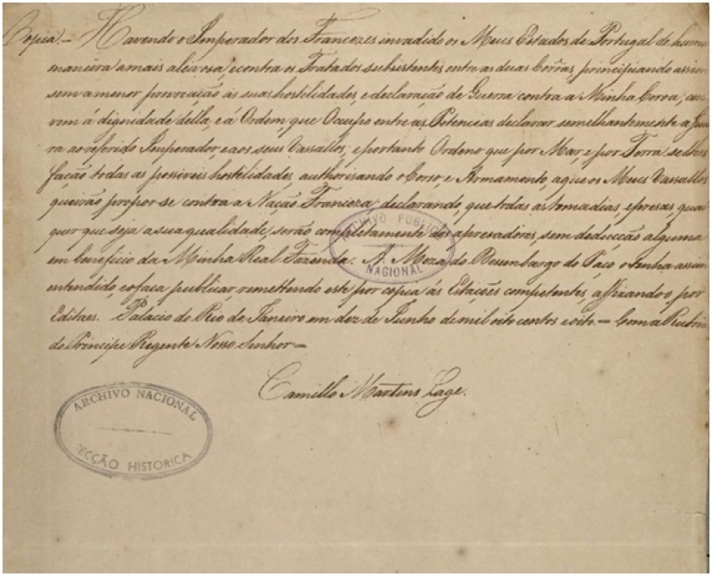 Direito de imagem Biblioteca Nacional de PortugalImagecaption Declaração de Guerra de Dom João 6º a Napoleão Bonaparte