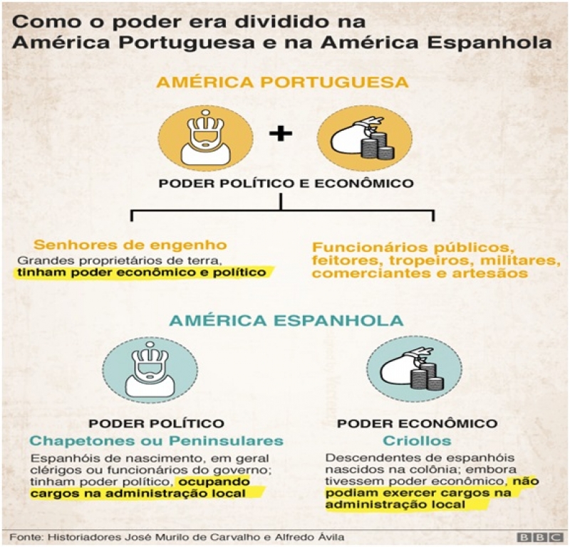 Mas fato inconteste era que, na América espanhola, os nascidos na colônia, os chamados criollos, a elite local (grandes proprietários de terras, arrendatários de minas, comerciantes e pecuaristas) eram desprezados em relação aos nascidos na Espanha, os Peninsulares.