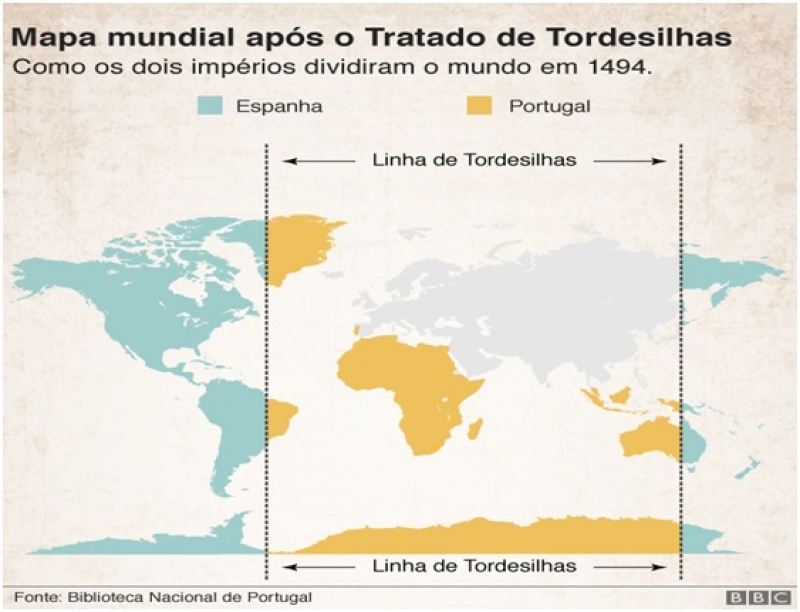 Direito de imagem Biblioteca Nacional de PortugalImagecaption Tratado de Tordesilhas, de 1494, foi assinado por Portugal e Castela (Espanha)