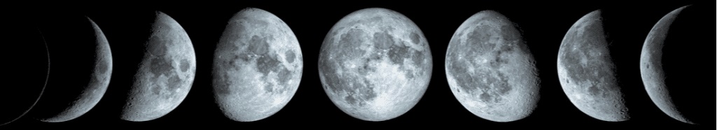Também existem as “interfases”: quarto crescente e crescente gibosa (entre as fases nova e cheia) e minguante gibosa e quarto minguante (entre a cheia e a minguante).