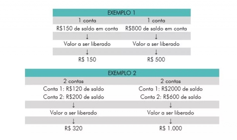 O valor sacado será de até R$ 500 por conta vinculada de titularidade do trabalhador, limitado ao valor do saldo tanto das contas ativas como inativas. Por exemplo: se ele tiver duas contas, uma com saldo de R$ 1.000 e outra com saldo de R$ 2.000, ele poderá sacar R$ 500 de cada uma delas. Se tiver R$ 70 na conta, poderá retirar o valor total.