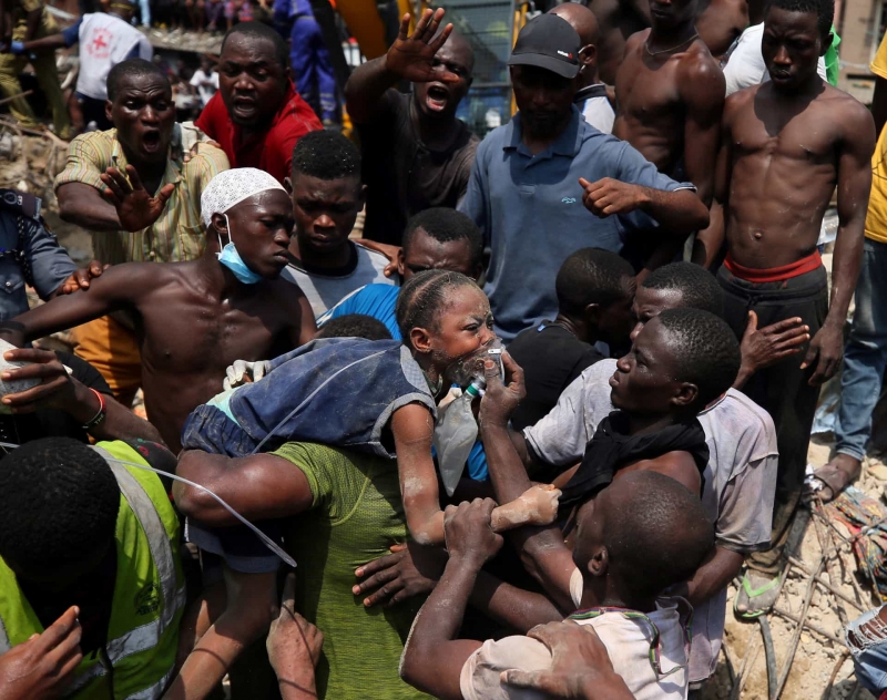 Ibrahim Farinloye, porta-voz da agência nacional de emergência, disse que não há confirmações de mortos até o momento, mas afirmou que a maioria das pessoas está soterrada.Funcionários estão trabalhando nos escombros e centenas de pessoas acompanham os resgates. Oito crianças já foram resgatadas.