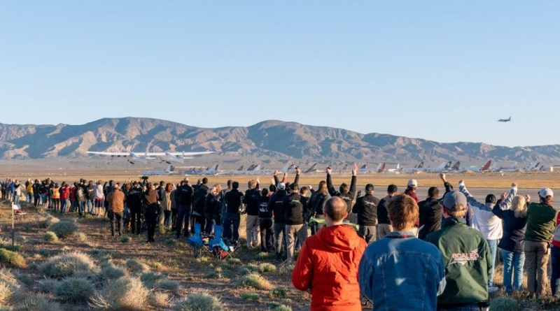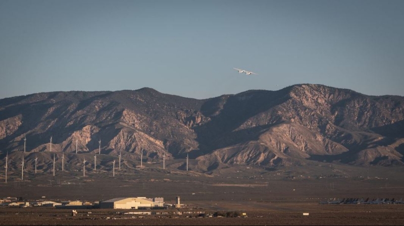 Máquina mede 117 metros de uma asa à outra e sobrevoou o deserto de Mojave, na Califórnia (EUA), por duas horas e meia. Empresa pretende usá-lo como plataforma para lançamento de satélites