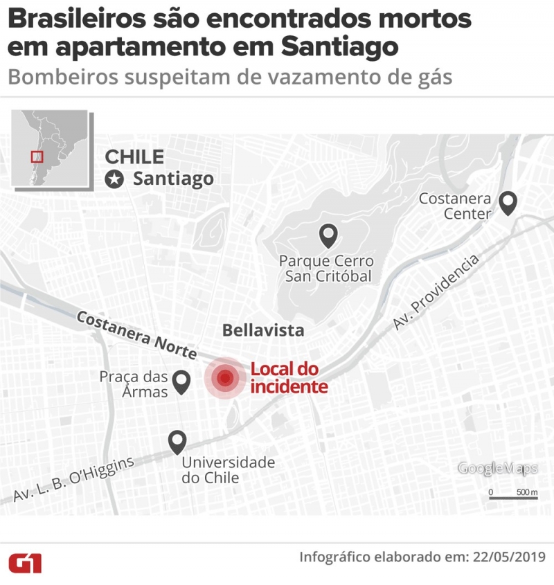 Um diplomata brasileiro recebeu a chamada e foi até o prédio. Ele chamou os bombeiros, que encontraram os seis corpos no apartamento, que tinha um forte cheiro de gás, segundo o comandante da polícia chilena, Rodrigo Soto