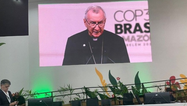 “Se vocês querem cultivar a paz, cuidem da Criação. Existe uma clara ligação entre a construção da paz e a custódia da Criação”. Assim se pronunciou o secretário de Estado do Vaticano, cardeal Pietro Parolin, ao ler a mensagem do Papa Leão XIV na 30ª Sessão da Conferência das Partes da Convenção-Quadro das Nações Unidas sobre Mudanças Climáticas (COP30) em Belém, no Brasil. “Se, por um lado, nestes tempos difíceis, a atenção e a preocupação da comunidade internacional parecem concentrar-se principalmente nos conflitos entre as nações”, sublinha o Santo Padre na sua mensagem, “por outro lado, cresce também a consciência de que a paz é ameaçada também pela falta de respeito pela Criação, pela pilhagem dos recursos naturais e pelo progressivo declínio da qualidade de vida devido às alterações climáticas”.