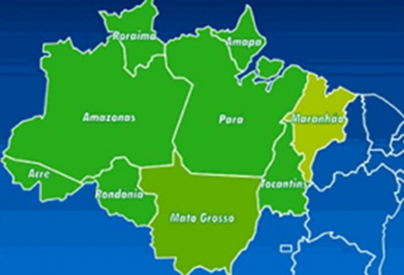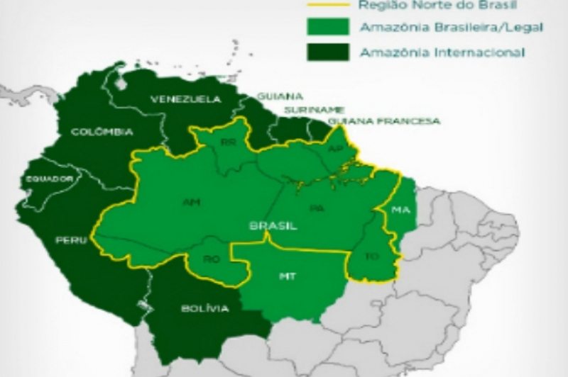 Mapa mostra os 9 estados brasileiros que compõem a Amazônia