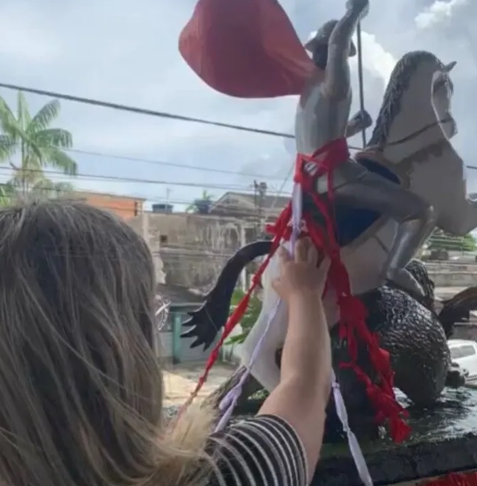 Quem também compartilha dessa devoção é sua mãe, Alda Cruz. A autônoma afirma que vai além da tradição umbandista e também celebra a festividade cristã em homenagem a São Jorge.