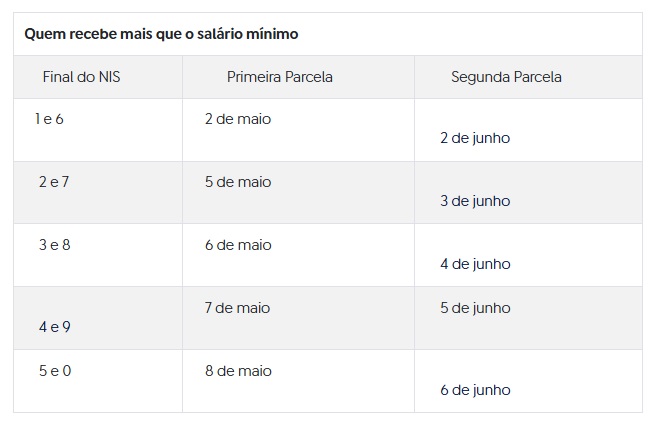 Com a previsão de injetar R$ 73,3 bilhões na economia, a antecipação do décimo terceiro do INSS será paga em duas parcelas. A segunda parcela vai de 26 de maio a 6 de junho. As datas são definidas com base no dígito final do Número de Inscrição Social (NIS) e com base na renda do beneficiário. Quem ganha apenas o salário mínimo começa a receber antes de quem recebe mais que o mínimo.