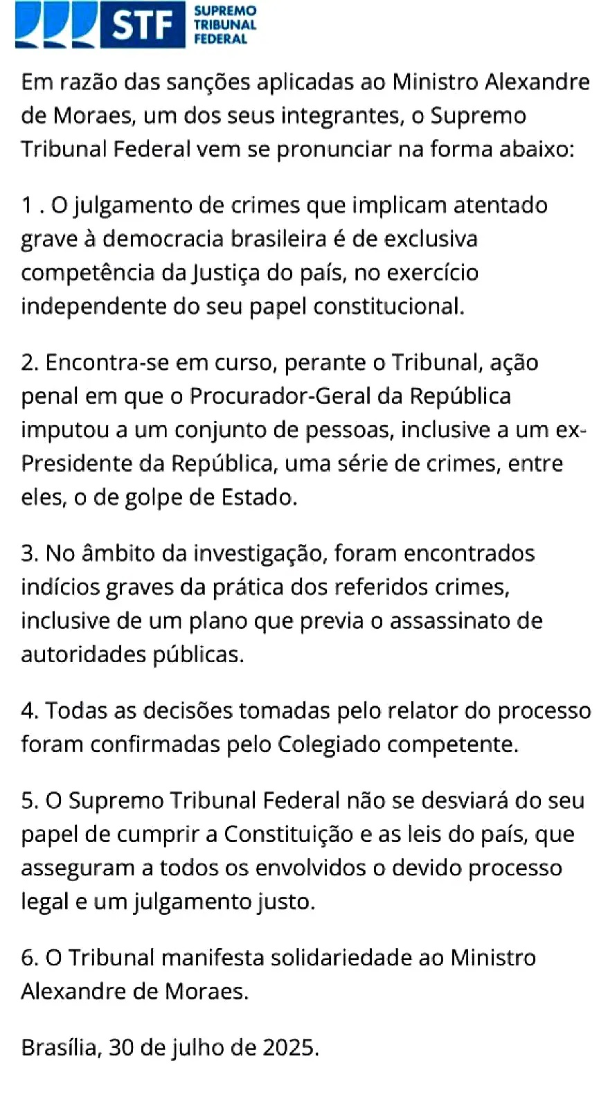 Um detalhe não pode ser deixado de lado neste momento histórico do país: tudo isso foi previamente avisado e documentado pelo presidente Donald Trump em comunicados oficiais. Ou seja, o governo brasileiro, o Congresso Nacional e os outros dez ministros do STF tiveram tempo para freá-lo antes das sanções impostas ao país. Mas ninguém agiu. Por quê?