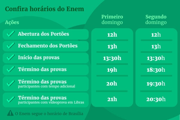A aplicação terá duração de 5 horas, 30 minutos a menos do que no 1º dia do exame. Confira os horários: