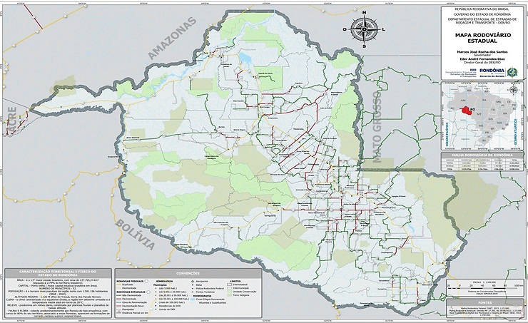 As rodovias federais em Rondônia somam 2.381km, sendo 97,71% pavimentadas .