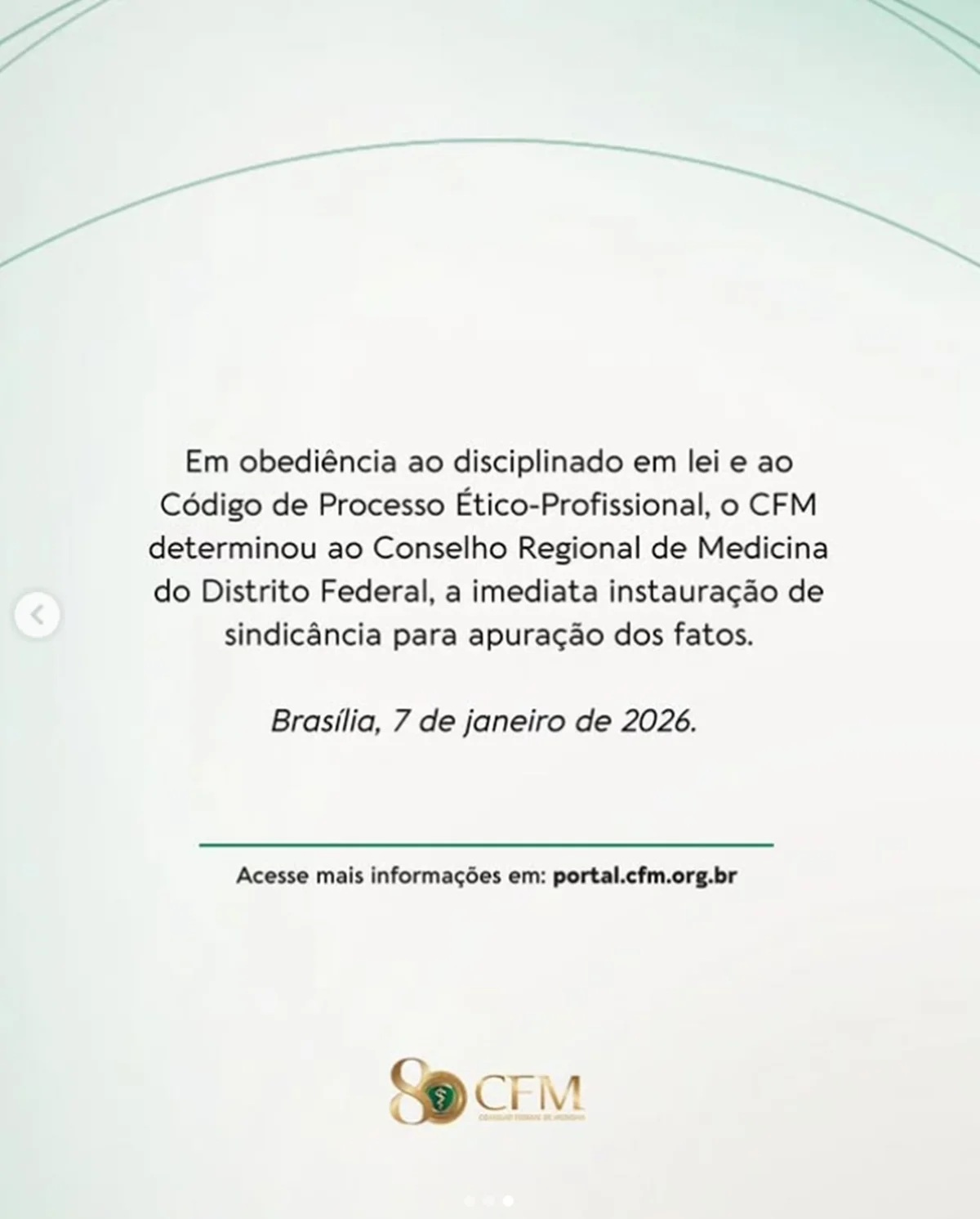 “O recebimento formal de denúncias protocoladas no CFM expressam inquietação quanto à garantia de assistência médica adequada ao paciente”, diz a nota. “Declarações públicas de relatos sobre intercorrências clínicas causam extrema preocupação à sociedade brasileira”, avalia ainda o CFM.