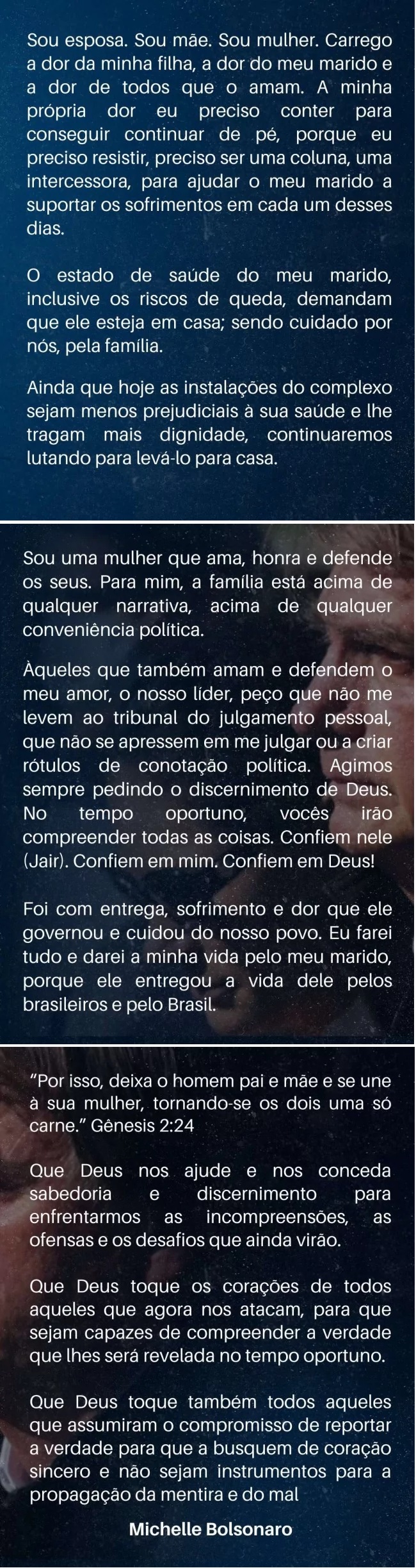 Veja a declaração de Michelle: