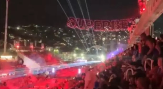 Após a Imperatriz Leopoldinense deixar a Sapucaí, um longo atraso fez o público ficar revoltado. A casa de apostas Superbet fez um show de drones patrocinado, deixando o público das arquibancadas indignado com a demora até que a Portela pudesse entrar. O show foi amplamente vaiado, xingado, e houve ofensas ao presidente da Liesa, Gabriel David. Enquanto isso, nos camarotes, os convidados curtiram shows de artistas.