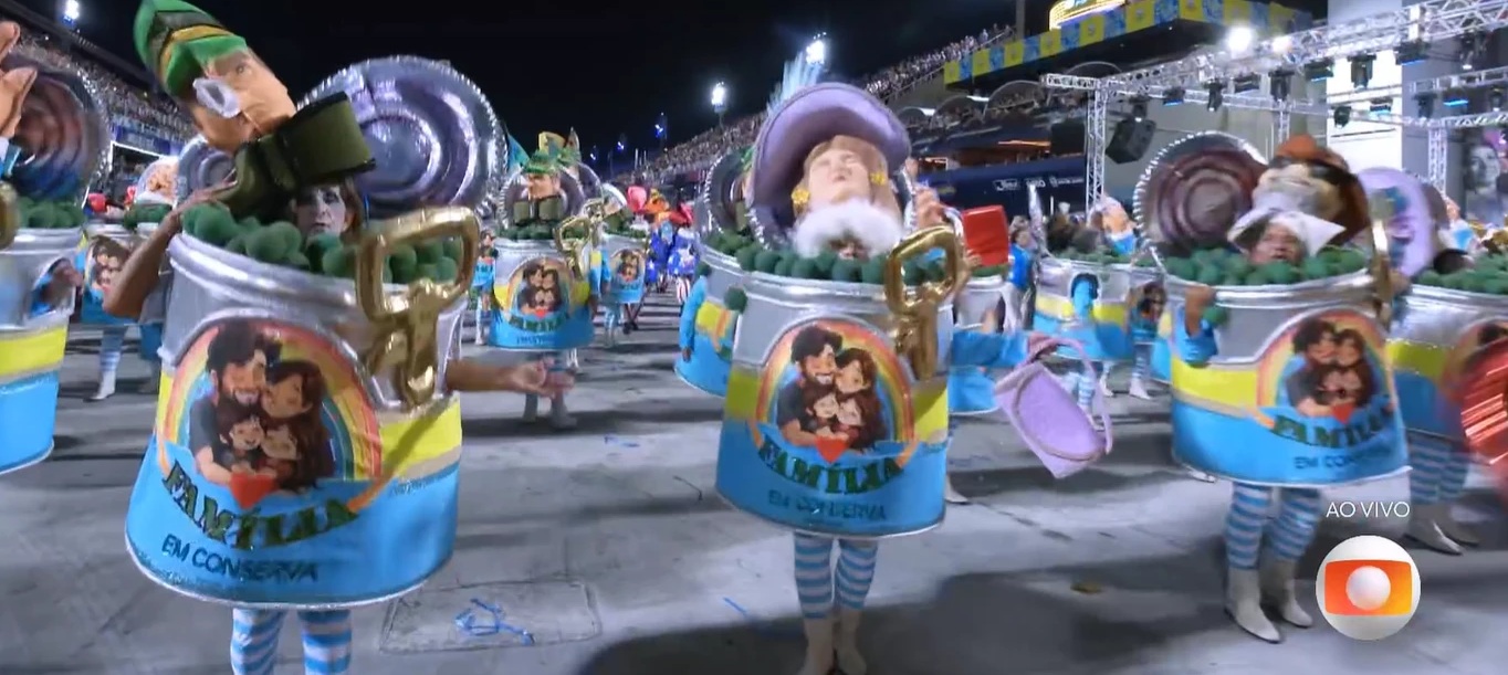 A Acadêmicos de Niterói, escola de samba que homenageou o presidente Lula (PT) no carnaval do Rio de Janeiro neste domingo (15) apresentou uma ala chamada “Neoconservadores em conserva”, com fantasias em formato de lata de conserva, em tom de sátira.