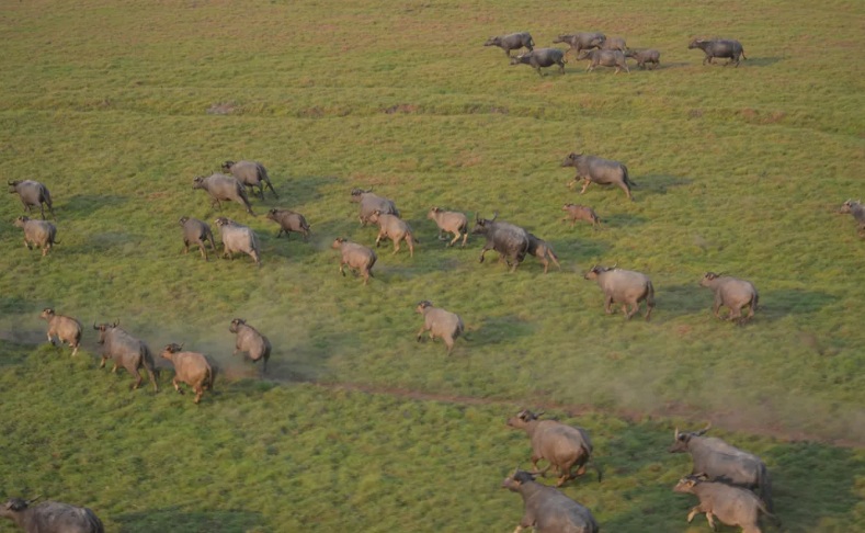 "Eu passei 10 dias andando aqui embaixo, levantando o drone, filmando. A gente não tem um único registro de cervo junto com o búfalo. Eles [os búfalos] estão empurrando e confinando os cervos em determinados pontos", explica Wilhan Cândido.