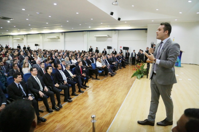 Autoridades de todos os Poderes constituídos e representantes de diversos segmentos da sociedade civil do estado de Rondônia lotaram o auditório da Faculdade São Lucas, em Porto Velho, para ver e ouvir de perto o ministro da Justiça e Segurança, juiz Sérgio Moro, durante o lançamento do pacote estadual de controle, prevenção e combate à corrupção, na terça-feira (16).
