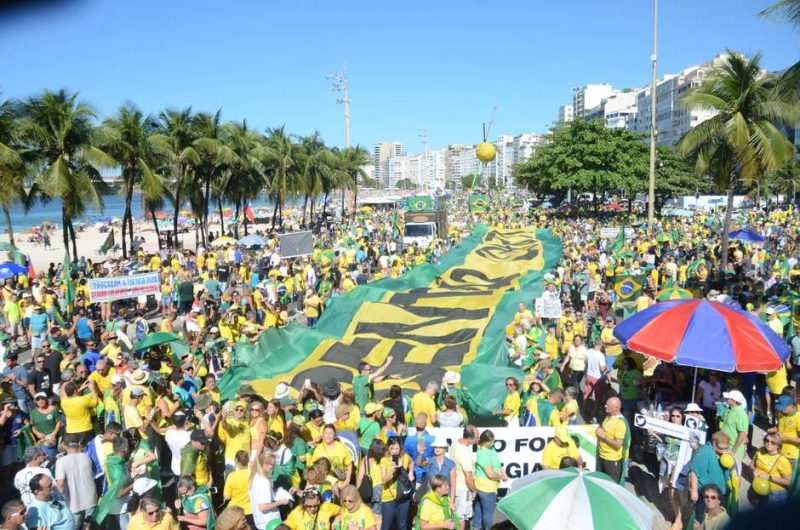 Manifestantes em ato pró Moro e Bolsonaro em Copacabana, Rio de Janeiro