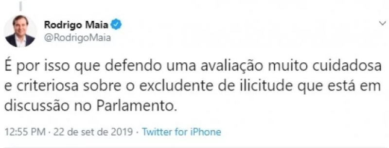E o presidente da Câmara Federal Rodrigo Maia – outro que sonha em ser presidente da República, mas nesse caso, só poder ser piada – preferiu atacar o projeto de lei anticrime do ministro Sérgio Moro, na questão da excludente de ilicitude.
