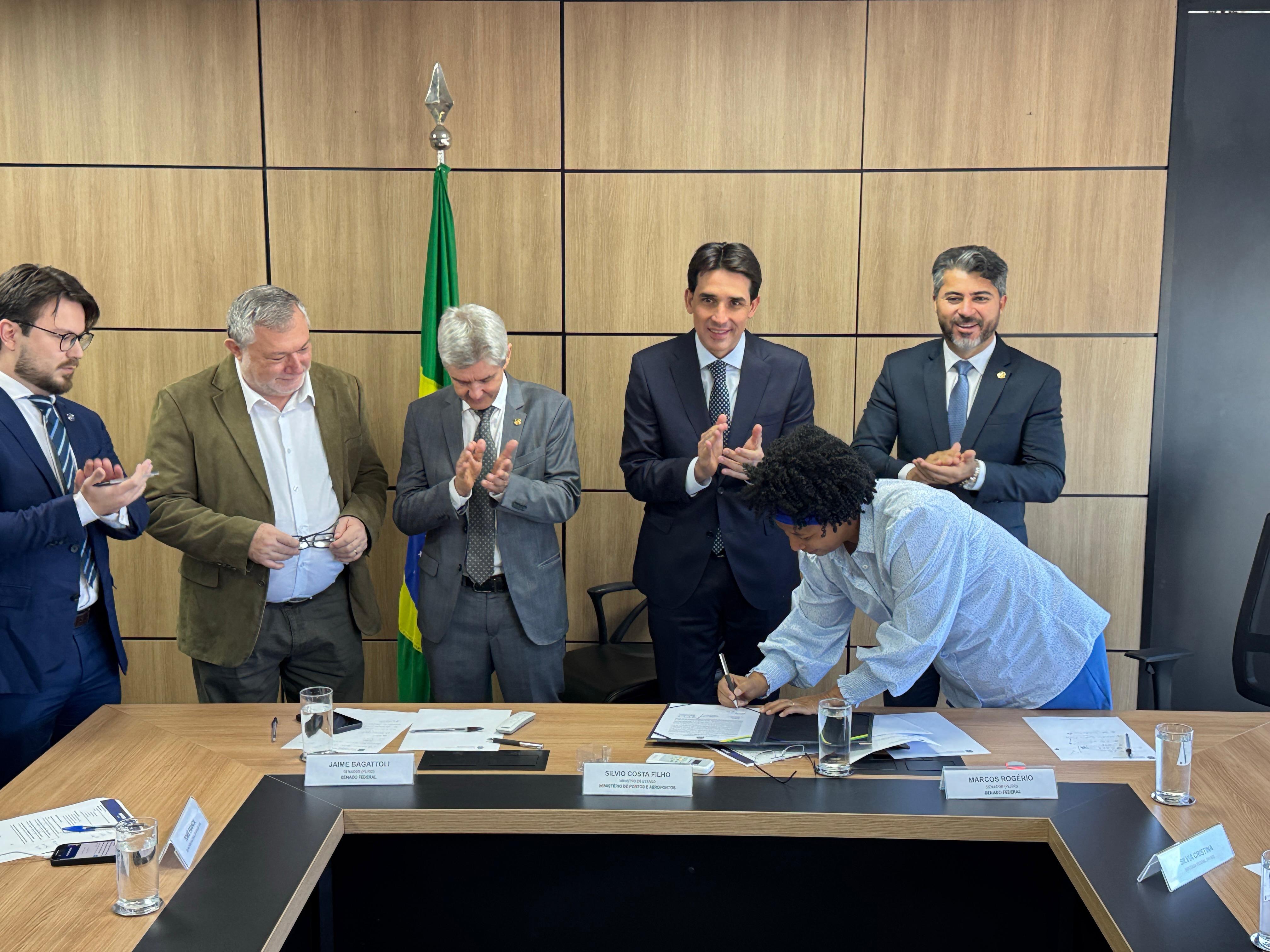 A deputada federal Sílvia Cristina participou nesta terça-feira (1), no Ministério de Portos e Aeroportos, da solenidade que marcou o anúncio da licitação para as obras de melhorias no aeroporto José Coleto, em Ji-Paraná. A parlamentar comemorou o investimento de R$ 35 milhões, anunciado pelo ministro Silvio Costa Filho, para as obras de ampliação e modernização do terminal de passageiros e do estacionamento.