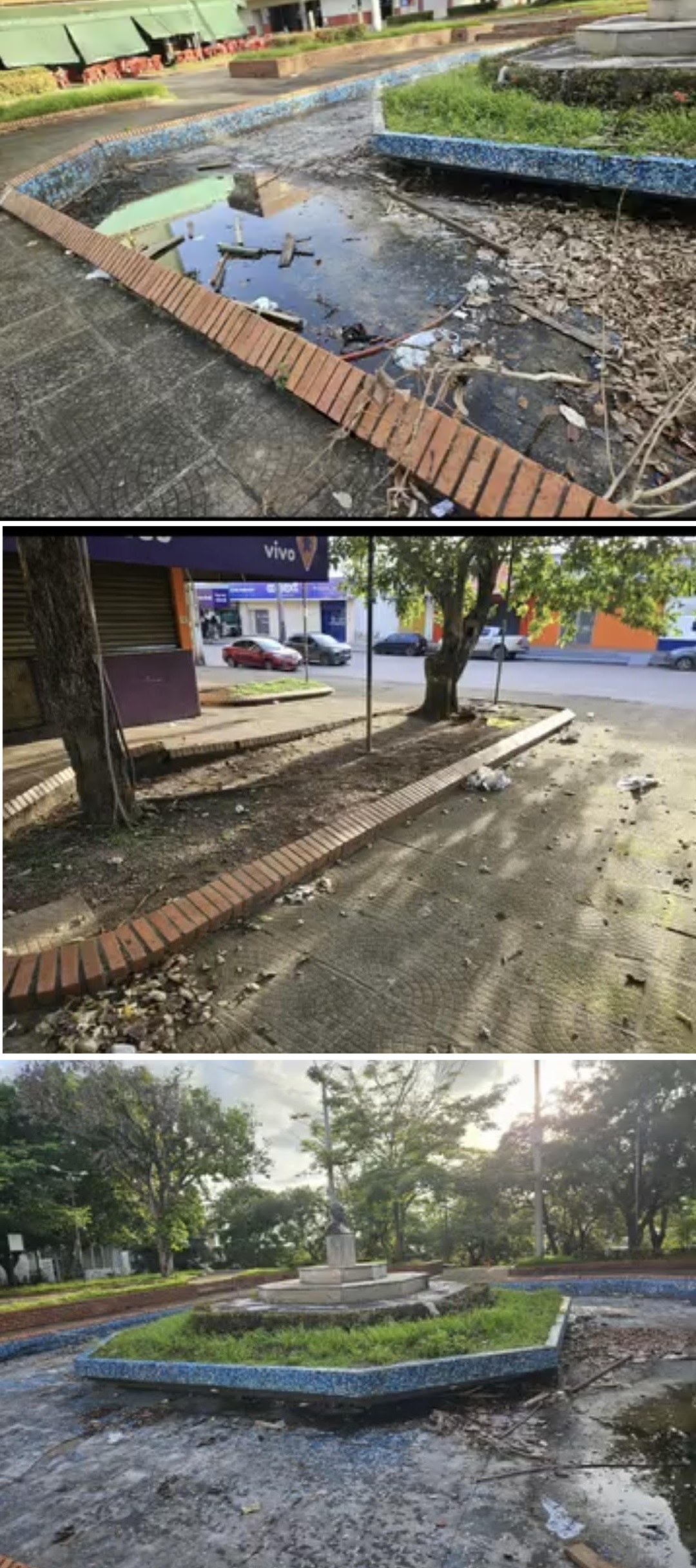 Debaixo de uma das árvores havia fezes e um odor forte de urina. No que era o chafariz, que no passado encantava aqueles que visitavam a Praça Marechal Rondon com suas águas e peixes ornamentando sua beleza, muita sujeira. A Praça que reunia famílias e amigos aos finais de semana era orgulho dos portovelhenses. Infelizmente o que deveria ser um dos cartões-postais da capital rondoniense se transformou em descaso, sujeira e abandono.