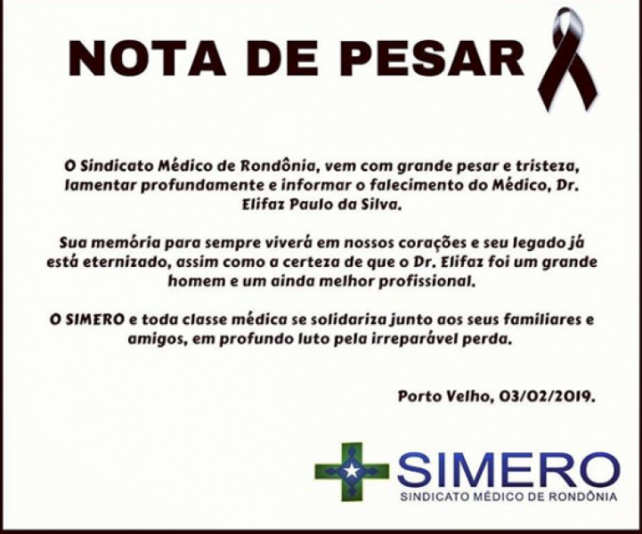 Morreu hoje em Cacoal, o ex-senador Elifas Paulo da Silva, 74, médico. Graduação em Medicina pela Universidade Federal do Paraná (1971), atualmente era sócio-proprietário e Médico Cirurgião Geral do Hospital Ortopédico HGO.