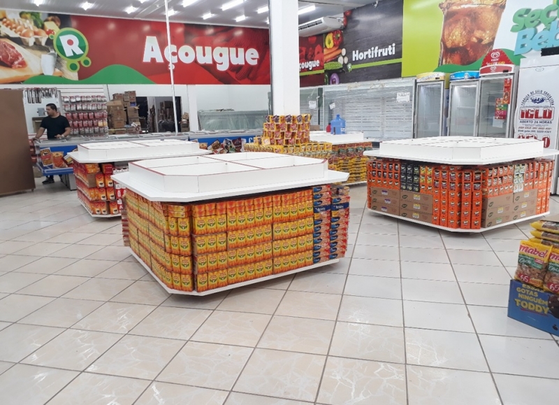 ... e gôndolas da loja.
