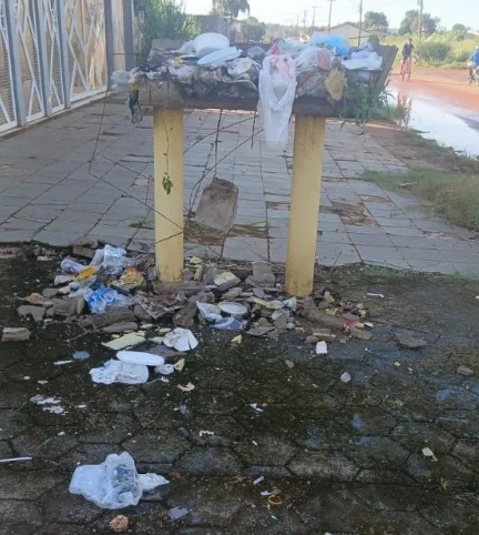 As imagens mostram lixeiras completamente reviradas, com sacos de lixo rasgados e resíduos espalhados pelas vias. Os registros também apontam a dificuldade enfrentada pelos trabalhadores da coleta urbana em lidar com o problema, agravado pela falta de manutenção em lixeiras públicas e pela ausência de ações eficazes de acolhimento social.