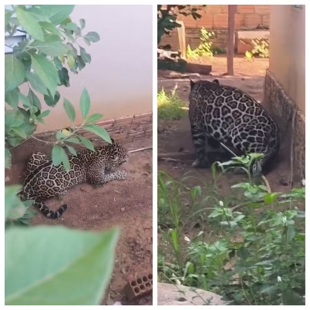 Uma onça-pintada invadiu uma residência na manhã desta segunda-feira (22) em Extrema, distrito de Porto Velho. Vídeos feitos por moradores mostram ela deitada, com a respiração ofegante, aparentemente estressada.