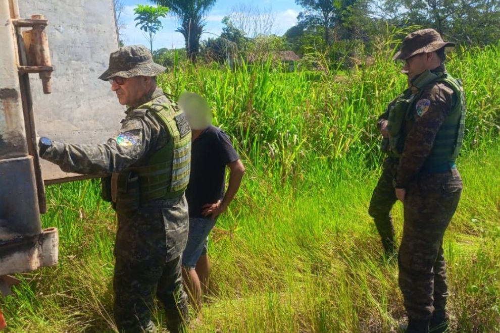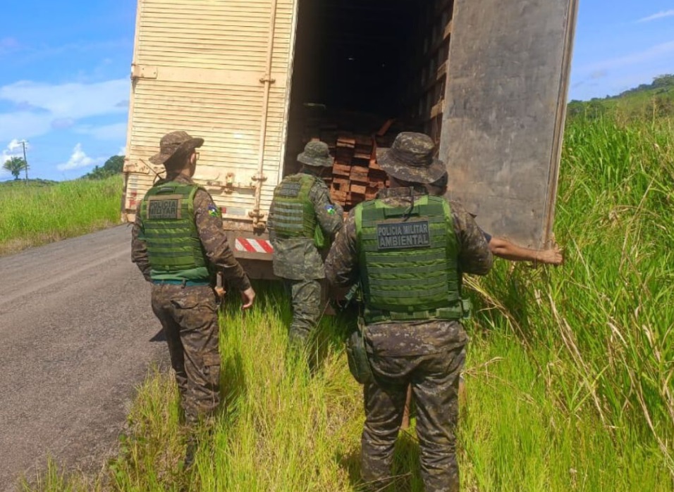 Durante patrulhamento ostensivo na zona rural do município de Jaru, a Polícia Militar Ambiental realizou a apreensão de um carregamento de madeira nativa serrada, transportado de forma ilegal. A ação ocorreu por volta das 11h, quando a equipe de fiscalização ambiental visualizou um caminhão Mercedes-Benz, de cor azul, transitando em baixa velocidade — indício de possível sobrecarga.Diante da fundada suspeita e da já conhecida utilização da região como rota de escoamento de produtos florestais clandestinos, os policiais realizaram a abordagem. O condutor, declarou estar transportando madeira, entretanto, não apresentou a documentação regulamentar prevista em lei, como a Nota Fiscal ou o Documento de Origem Florestal (DOF).