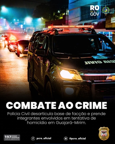 Nesta quinta (28), a Polícia Civil de Rondônia, por meio da 1ª Delegacia de Polícia Civil de Guajará-Mirim, elucidou em menos de 24 horas duas tentativas de homicídio registradas no dia 27 de agosto de 2025, no município, resultando na prisão de sete integrantes de uma facção criminosa.