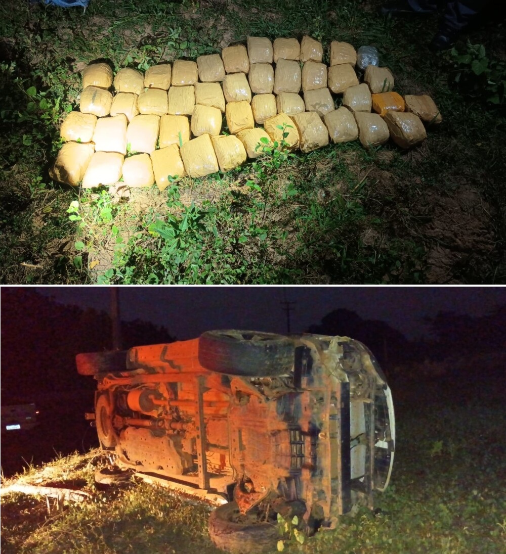 A Polícia Militar foi acionada e, ao chegar no local, durante a verificação do veículo, encontrou uma grande quantidade de entorpecente, aparentemente maconha, totalizando cerca de 24 quilos.