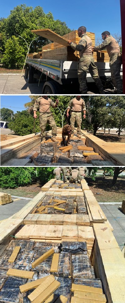 Entretanto, durante uma revista, com auxílio de cães farejadores, os policiais localizaram centenas de tabletes de maconha. O carregamento foi encontrado escondido no meio da carga de tábuas de madeira. Foi necessário utilizar uma empilhadeira para descarregar todo o material entorpecente. No total, foram apreendidos 3.465 quilos de maconha.