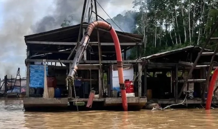 Segundo as autoridades, essas embarcações indicam “atividade estruturada e com capacidade de extração de minerais em larga escala”.