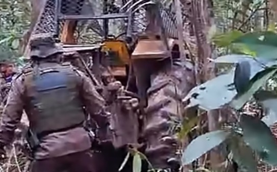 Durante a vistoria, as equipes constataram a supressão de vegetação nativa com uso de fogo, prática proibida pela legislação ambiental, e identificaram área degradada de significativa extensão. No local, também foi apreendido um trator utilizado nas ações ilícitas, que auxiliava na abertura de clareiras e retirada da cobertura vegetal.