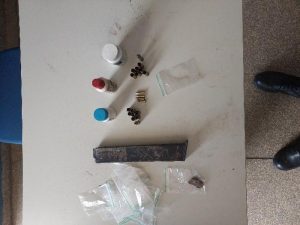 No interior do imóvel também foram apreendidas sete cápsulas deflagradas de munição calibre 9 milímetros, sete cápsulas deflagradas de calibre .38, uma munição calibre .38 intacta e quatro cápsulas de calibre .22 intactas. Os policiais encontraram ainda embalagens plásticas comumente utilizadas para acondicionamento de entorpecentes, sendo que uma delas continha uma quantidade de maconha.
