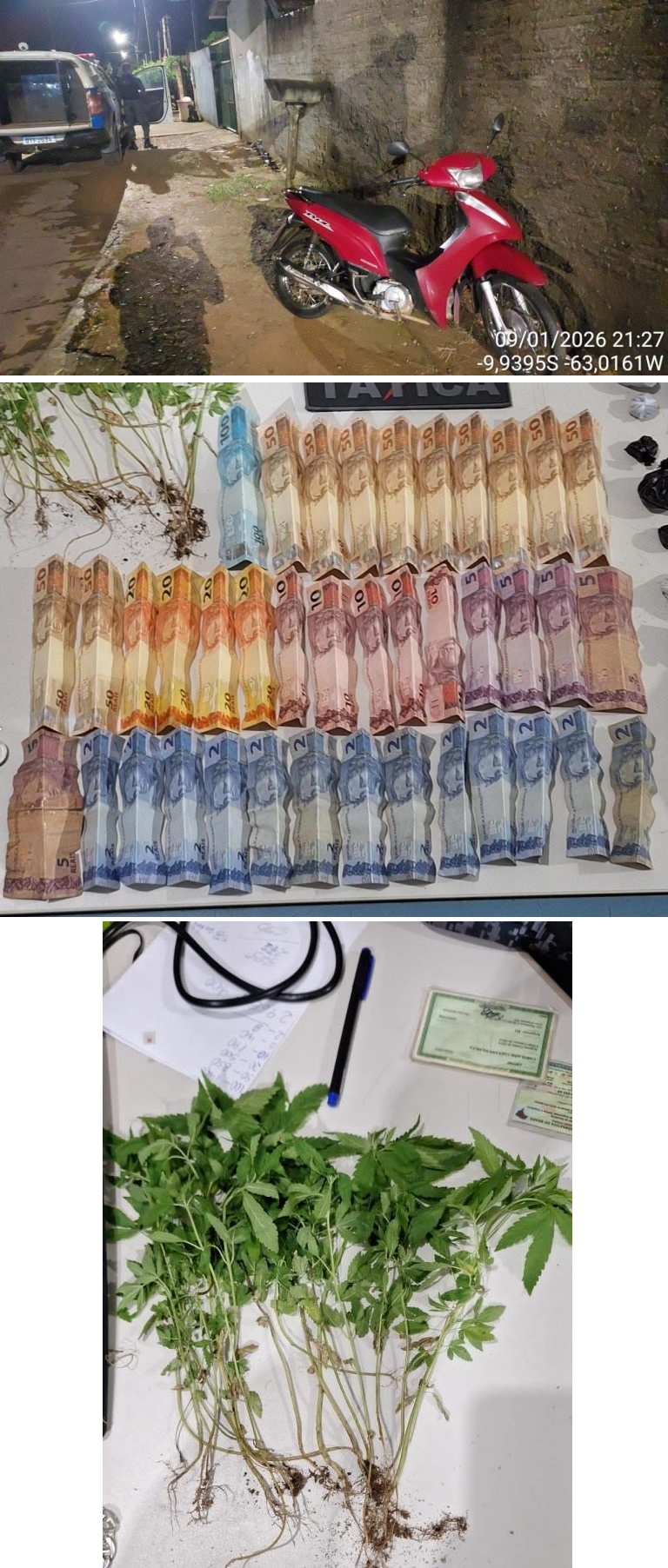 Na noite de 09 de janeiro de 2026, por volta das 21h30, a Polícia Militar de Rondônia, por meio de uma guarnição especializada do 7º BPM, realizou uma ação policial técnica e precisa durante a operação Comando e Abordagem, após receber denúncia anônima e informações reiteradas da vizinhança sobre possível tráfico de drogas em uma residência no município de Ariquemes. A guarnição se deslocou ao local, fez o contato inicial e, já na área externa do imóvel, identificou aproximadamente 15 pés de planta com características de maconha, evidenciando a prática criminosa.