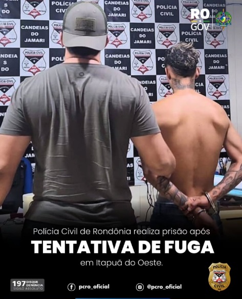 Na tarde desta segunda-feira (19), a Polícia Civil de Rondônia, através da Delegacia de Itapuã do Oeste e com o apoio da equipe da Delegacia de Candeias, efetuou uma prisão após fuga de suspeito.