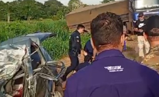 A colisão envolveu duas carretas carregadas e um veículo de passeio, ocorreu por volta das 8h da manhã e foi tão violenta que as vítimas não resistiram aos ferimentos e morreram no local antes de receber atendimento médico.